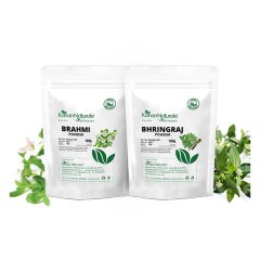 Kerala Naturals Bhringraj and Brahmi Powder Combo offers a dual benefit for hair and cognitive health. Bhringraj powder is widely used in Ayurvedic hair care to promote hair growth, prevent premature greying, and strengthen roots. Brahmi powder supports brain function, improves memory, and reduces mental stress. Both powders are 100% pure, finely ground, and free from additives. Each 100 gm pack is suitable for internal use or as a topical paste. Ideal for those seeking natural and holistic wellness solutions.