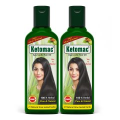 Ketomac Ayurvedic Hair Oil (Pack of 2 X 130 ml) 1’s experience the transformative power of ketomac ayurvedic hair oil, a nourishing blend designed to promote healthy hair growth. This pack of 2 x 130 ml bottles is infused with potent Ayurvedic herbs, carefully formulated to combat hair fall and stimulate new growth. Enriched with essential oils, Ketomac oil penetrates deep into the scalp, providing nourishment and strengthening each strand from within. Embrace luscious, vibrant locks with Ketomac Ayurvedic Hair Oil – your secret weapon against hair loss and damage.