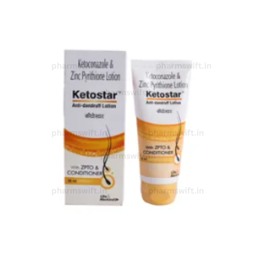 Ketostar Anti Dandruff Lotion is a medicated scalp treatment enriched with ketoconazole, an antifungal agent that effectively treats dandruff, seborrheic dermatitis, and other fungal scalp conditions. It works by eliminating dandruff-causing fungi and soothing scalp irritation. Recommended for severe or resistant cases of dandruff, it can be applied directly to the scalp and used regularly for lasting results.