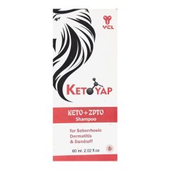 KETOYAP Shampoo 60ml is a specialized anti-dandruff formula designed to combat scalp irritation and flaking. Enriched with 2% Zinc Pyrithione, this shampoo effectively targets dandruff at its source, promoting a healthier, flake-free scalp. Its gentle, sulfate-free formula ensures minimal irritation while maintaining optimal cleansing properties. Experience the benefits of a revitalized, balanced scalp with KETOYAP Shampoo 60ml.