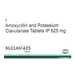 KLCLAV 625 Tablet is a combination antibiotic containing amoxicillin and clavulanic acid, designed to treat infections caused by resistant bacteria. It is commonly prescribed for respiratory infections, urinary tract infections, sinusitis, ear infections, and skin infections. The combination ensures enhanced effectiveness by preventing bacterial resistance. This medicine should be taken with food to minimize stomach upset. Patients must follow the doctor’s dosage instructions carefully and complete the entire course. Proper usage of KLCLAV 625 ensures effective relief from infection and helps reduce the risk of resistance.