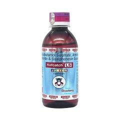KOFCATCH LS Junior Syrup 100ml is designed to manage productive cough in children with a pleasant strawberry flavor. It includes Levosalbutamol, Ambroxol, and Guaiphenesin to reduce mucus viscosity, relax airway muscles, and enhance respiratory clearance. The syrup is ideal for pediatric use, ensuring effective symptom relief and better taste appeal.