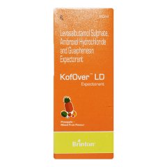 KOFOVER LD PINEAPPLE+MIXED FRUIT FLAVOUR Expectorant 60ml experience soothing relief with kofover ld pineapple+mixed fruit flavor expectorant, a 60ml solution designed to alleviate persistent coughs. This expectorant, with its delightful fruity flavor, works by loosening and expelling mucus from the respiratory tract, providing quick and effective relief. Ideal for those seeking a natural-tasting remedy to combat coughs, Kofover LD offers a refreshing way to find relief from your symptoms.