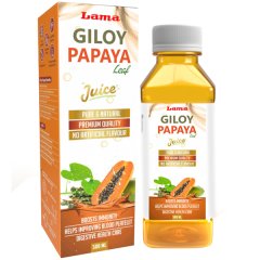 Lama Giloy Papaya Leaf Juice 500 ml is a herbal wellness juice enriched with the powerful benefits of Giloy and Papaya leaves. This combination helps enhance immunity, supports healthy platelet levels, and aids in faster recovery during seasonal infections. Known for its detoxifying and antioxidant properties, it promotes overall vitality and well-being. Ideal for those seeking natural immune support, this juice is free from artificial additives and preservatives. Regular consumption may help maintain internal balance and support the body’s natural defense mechanisms.