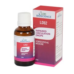 LDD Bioscience LD 62 Impaired Circulation Drops 30 ml ldd bioscience ld 62 impaired circulation drops, a 30 ml solution, is meticulously formulated to support healthy blood flow and circulation. This innovative product contains a potent blend of natural ingredients, specifically designed to help maintain optimal vascular function. By promoting efficient blood flow, LD 62 Drops may help alleviate symptoms associated with impaired circulation, such as cold extremities, tingling sensations, and cramping. Enhance your overall well-being with LDD Bioscience’s advanced circulatory support formula.