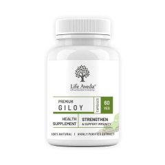 Life Aveda Premium Giloy Veg Capsule is a natural immunity booster enriched with pure Giloy extract. It helps fight infections, supports liver function, and promotes detoxification. Known for its anti-inflammatory properties, Giloy also helps reduce fatigue and improve energy levels. Vegetarian and free from harmful chemicals, it?s ideal for daily immune support.