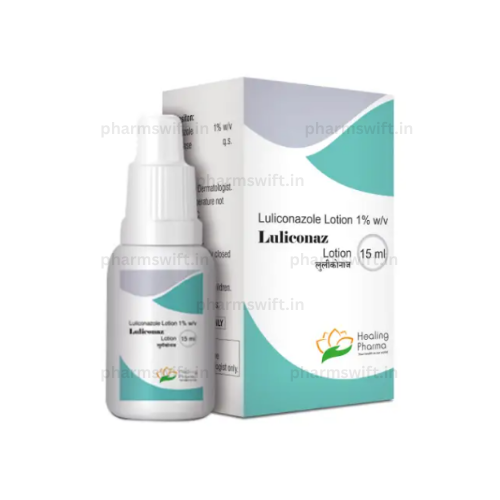 Luliconaz Lotion is a prescription antifungal lotion containing luliconazole, used to treat fungal skin infections like ringworm, jock itch, and athlete’s foot. It penetrates deep to inhibit fungal growth and alleviate itching, redness, and flaking. Its non-sticky formula ensures quick absorption and comfort for daily use.