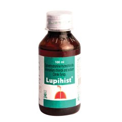 Lupihist Syrup 100ml is a soothing antihistamine and decongestant medication designed to alleviate symptoms of allergies and common cold. This syrup contains the active ingredient Loratadine, a potent antihistamine that helps reduce allergy symptoms such as sneezing, itching, and runny nose. The decongestant in Lupihist Syrup, Phenylephrine Hydrochloride, works to relieve nasal congestion by narrowing the blood vessels in the nasal passages. This combination therapy provides effective relief for allergy and cold symptoms, allowing you to breathe easier and enjoy improved comfort. Use Lupihist Syrup as directed by your healthcare provider for optimal results.