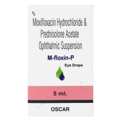 M FLOXIN P Eye Drops 5ml moxifloxacin ophthalmic solution 5ml: a potent antibacterial eye drop, moxifloxacin p eye drops effectively treat bacterial conjunctivitis and corneal infections. This 5ml solution offers a convenient dosage form for quick relief and clear vision. Moxifloxacin, a fluoroquinolone antibiotic, targets a broad spectrum of bacteria, ensuring effective treatment for various eye infections. Use as directed for optimal results.