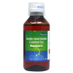 Magnatuss A Cough Syrup 100ml is formulated to treat allergic and productive coughs. It commonly includes ambroxol, which breaks down thick mucus, and chlorpheniramine, which reduces allergic symptoms like sneezing and throat irritation. This combination helps in relieving chest congestion, making breathing easier and improving overall respiratory comfort.