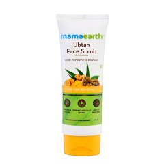 Mamaearth Ubtan Face Scrub is specially formulated with turmeric and walnut beads to gently exfoliate the skin, revealing a smoother and brighter complexion. Turmeric helps reduce tan and enhances skin radiance, while walnut beads effectively remove dead skin cells and deep-seated impurities. This scrub promotes an even skin tone and refreshes dull skin, making it ideal for regular skincare. Its natural, toxin-free formula ensures safe use for all skin types without causing dryness or irritation. Perfect for combating everyday pollution and dirt, it leaves the skin feeling clean, soft, and rejuvenated. Enriched with skin-friendly ingredients, this scrub supports healthy, glowing skin naturally.