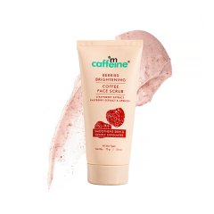 Mcaffeine Berries Brightening Coffee Face Scrub For Glow Exfoliating and Tan Removal Scrub 75 gm experience radiant, revitalized skin with mcaffeine berries brightening coffee face scrub (75g). This exfoliating and tan removal scrub harnesses the power of invigorating coffee beans and antioxidant-rich berries to gently slough off dead skin cells, revealing a brighter, more even complexion. Enhance your skincare routine with this invigorating scrub for a glowing, refreshed appearance.