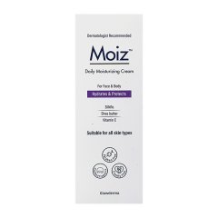 MOIZ DAILY MOISTURIZING FOR FACE & BODY Cream 50gm moiz daily moisturizing cream for face & body, 50gm: a nourishing formula designed to combat dryness. Enriched with essential moisturizers, this cream helps restore skin’s natural moisture balance, leaving it soft, smooth, and revitalized. Suitable for both face and body, it’s an ideal choice for those seeking daily hydration. Infused with skin-friendly ingredients, this cream helps maintain skin’s elasticity and improves its overall health. Experience the soothing effects of MOIZ Daily Moisturizing Cream for a radiant and rejuvenated complexion.