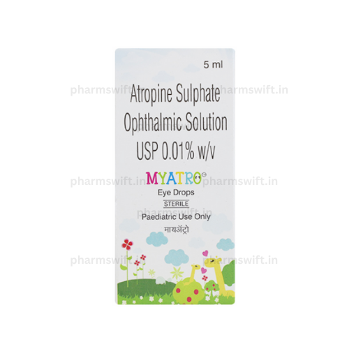 Myatro Eye Drops is a mydriatic and cycloplegic agent containing Tropicamide and Phenylephrine, used to dilate the pupils during eye examinations or ophthalmic surgeries. It temporarily relaxes the eye muscles and provides a clear view of the internal structures for proper diagnosis. Use only under ophthalmologist supervision.