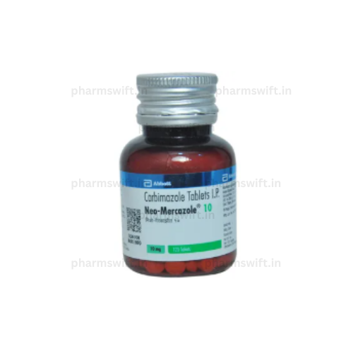 Neo-Mercazole 10 Tablet 120’s contains Carbimazole, an antithyroid medication used to treat hyperthyroidism by controlling the overproduction of thyroid hormones. It effectively helps manage symptoms such as weight loss, tremors, anxiety, and increased heart rate. This medicine is often prescribed in conditions like Graves’ disease or goiter. Regular monitoring and dosage as per the doctor’s guidance are essential for safe and effective results.