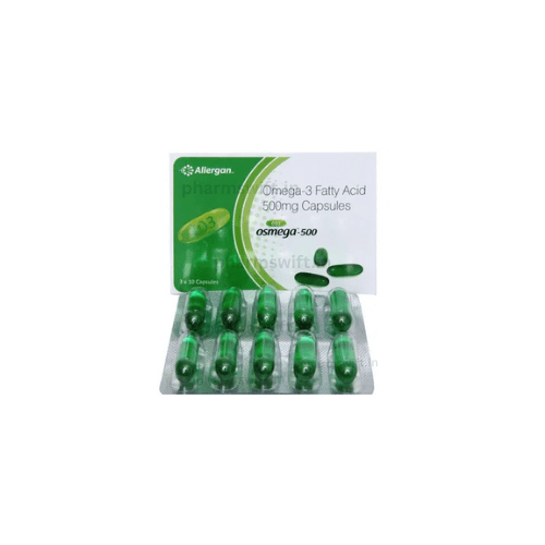 Osmega 500 Capsule is a rich source of Omega-3 fatty acids, including EPA (eicosapentaenoic acid) and DHA (docosahexaenoic acid). These essential fatty acids are known to support heart health by helping to maintain healthy triglyceride levels and blood pressure. They also play a crucial role in brain function, vision, and may help reduce inflammation throughout the body. Regular intake of Osmega 500 can contribute to overall well-being.