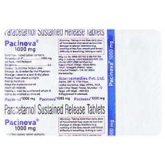 PACINOVA 1000 Tablet 10’s is a high-dose Paracetamol formulation used for severe pain, high-grade fever, or specific clinical conditions requiring stronger antipyretic action. It helps in reducing fever and providing prolonged pain relief. Only to be used under strict medical advice due to the high dosage content.
