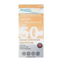 PHOTOSAFE SPF 50 PA++++ Hybrid Sunscreen Gel offers a powerful blend of mineral and chemical filters for complete sun protection. It shields the skin from UVA, UVB, and infrared rays, helping prevent sunburn, hyperpigmentation, and early ageing. The high PA++++ rating ensures superior UVA defense, while the gel texture absorbs quickly without a greasy feel. Suitable for all skin types, it provides a smooth, matte finish for comfortable daily wear. Dermatologically tested for safe and effective use.