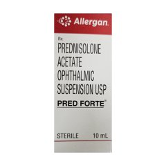 Pred Forte Ophthalmic Suspension 10ml is a potent eye medication containing the active ingredient Prednisolone Acetate 1%. This suspension is specifically formulated for the treatment of various inflammatory conditions affecting the eye, such as allergic conjunctivitis, anterior uveitis, and other ocular inflammations. Its high-potency formula provides effective relief from redness, itching, and discomfort associated with these conditions. Use Pred Forte Ophthalmic Suspension 10ml as directed by your healthcare provider for optimal results. Always consult a healthcare professional for proper usage instructions and potential interactions with other medications.