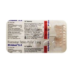Rivaban 2.5 Tablet 10’s is a prescription medication used for the prevention and treatment of blood clots (thromboembolism). Each tablet contains 2.5 mg of the active ingredient, rivaroxaban, a direct factor Xa inhibitor. This medication works by blocking the action of factor Xa, an enzyme involved in blood clotting, thereby reducing the risk of dangerous blood clots forming in the body. Rivaban is indicated for various conditions such as deep vein thrombosis, pulmonary embolism, and atrial fibrillation. Always consult with a healthcare professional for proper usage and dosage instructions.