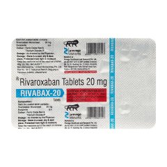 Rivabax 20 Tablet 14’s is a prescription medication designed to help manage blood clots. Each tablet contains 20mg of Rivaroxaban, an anticoagulant that works by inhibiting Factor Xa, thereby reducing the risk of harmful blood clots forming. This medication is indicated for the prevention of stroke and systemic embolism in patients with non-valvular atrial fibrillation, as well as for the treatment and prevention of deep vein thrombosis (DVT) and pulmonary embolism (PE). Rivabax is also used to reduce the risk of recurrent DVT and PE following initial treatment. Always take Rivabax as directed by your healthcare provider.