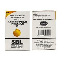 SBL Aurum Muriaticum Natronatum 6X Tablet 25 gm sbl aurum muriaticum natronatum 6x tablets, each weighing 25 grams, are homeopathic remedies designed to address a range of health concerns. The key active ingredient, Aurum Muriaticum Natronatum, is a potent homeopathic solution traditionally used to alleviate symptoms associated with anxiety, depression, and feelings of worthlessness. These tablets are suitable for individuals seeking a natural approach to mental health management. The 6X potency indicates a high dilution of the active ingredient, ensuring minimal side effects while maintaining therapeutic benefits. SBL’s commitment to quality ensures these tablets meet the highest industry standards for homeopathic remedies.