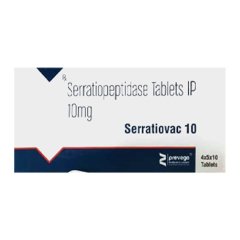 Serratiovac 10 Tablet 10’s is a prescription medication containing 10mg of Sertraline, a selective serotonin reuptake inhibitor (SSRI). This drug is primarily used to treat major depressive disorder, obsessive-compulsive disorder, and panic disorder. It works by increasing the levels of serotonin in the brain, helping to improve mood and reduce anxiety. Serratiovac may also be used off-label for other conditions such as post-traumatic stress disorder (PTSD) and social anxiety disorder. Always consult with a healthcare provider for proper usage and dosage instructions.
