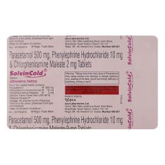Solvin Cold Tablet 10’S is a comprehensive medication designed to alleviate symptoms of the common cold. Each tablet contains 500mg of Paracetamol and 20mg of Phenylephrine Hydrochloride, providing effective relief from nasal congestion and fever. This combination drug also soothes sore throats and reduces cough, offering comprehensive cold relief. Solvin Cold Tablet 10’S is a trusted choice for those seeking fast-acting, multi-symptom cold relief. Always consult a healthcare professional before use.