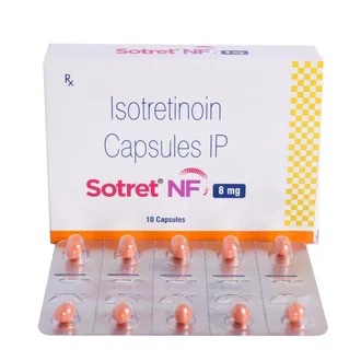 Sotret NF 8mg Tablet 10’s is a retinoid medicine that contains Isotretinoin, prescribed for the treatment of severe nodular or cystic acne that has not responded to conventional therapies. It works by reducing sebaceous gland activity, lowering oil production, and preventing skin pore blockage, thereby improving acne over time. Due to its potency, Sotret NF requires careful monitoring as it may cause dryness, skin sensitivity, and other systemic side effects. Women of childbearing age must follow strict contraceptive measures during treatment as Isotretinoin can cause severe birth defects. The dose and duration are individualized by the dermatologist depending on acne severity and patient tolerance. Regular follow-ups, blood tests, and adherence to medical advice ensure safe and effective results with this therapy.