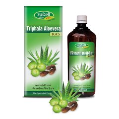 Swadeshi Ayurved Triphala Aloevera Ras Juice 500 ml is a potent blend of Triphala’s digestive benefits with Aloe Vera’s hydrating and healing properties. It aids in detoxifying the body, improving digestion, and maintaining healthy bowel movements. Rich in antioxidants, it also nourishes the skin, strengthens immunity, and supports overall vitality.