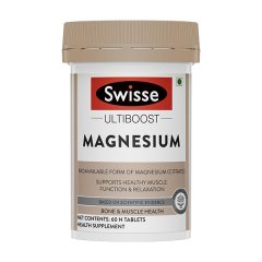 Swisse Ultiboost Magnesium Tablet 60’s swisse ultiboost magnesium tablets, a potent dietary supplement, contains 100mg of elemental magnesium per tablet. These tablets are designed to support healthy muscle function, nerve impulse transmission, and energy production. The magnesium in these tablets helps maintain normal psychological function and contributes to the reduction of tiredness and fatigue. Each box contains 60 tablets, making it an ideal choice for maintaining magnesium levels in your daily routine. Enhance your wellbeing with Swisse Ultiboost Magnesium Tablets.
