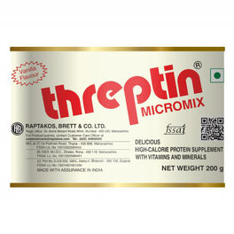 Threptin Micromix Vanilla Flavour Powder, 200 gm threptin micromix vanilla flavour powder, a 200gm solution, is a specially formulated nutritional supplement designed to address the nutritional needs of individuals with specific dietary requirements. This powder, flavored with vanilla, contains essential nutrients that help maintain optimal health and wellness. Threptin Micromix is particularly beneficial for those who require a balanced dietary supplement due to illness, surgery, or other health conditions. Its unique formula ensures the absorption of vital nutrients, promoting overall health and recovery. The 200gm pack offers a convenient and tasty way to meet your daily nutritional needs.