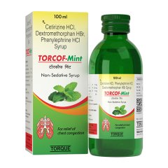 TorcoF Mint Syrup 100ml is a soothing, mint-flavored oral solution designed to alleviate symptoms associated with common colds and coughs. This syrup contains Dextromethorphan HBr, an effective expectorant that helps loosen and expel mucus from the respiratory tract, easing coughing. The menthol in TorcoF Mint Syrup provides a refreshing taste while also offering a cooling sensation to the throat, further enhancing its comforting effects. Use TorcoF Mint Syrup as directed by your healthcare provider to help manage your cold and cough symptoms effectively.