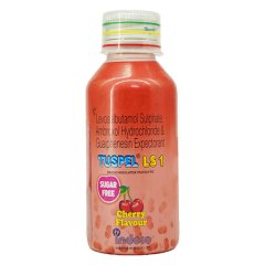 TUSPEL LS 1 SUGAR FREE CHERRY FLAVOUR Expectorant 100ml tuspel ls 1 sugar-free cherry flavor expectorant, a 100ml solution, is designed to alleviate persistent coughs and soothe irritation in the throat. This sugar-free formula, flavored with cherry, is an effective expectorant that helps loosen and expel mucus from the respiratory tract, providing relief for those suffering from coughs associated with colds and flu. The Tuspel LS 1 Expectorant is a valuable addition to your cold and flu remedy arsenal, offering a palatable solution for adults and children over 6 years old.