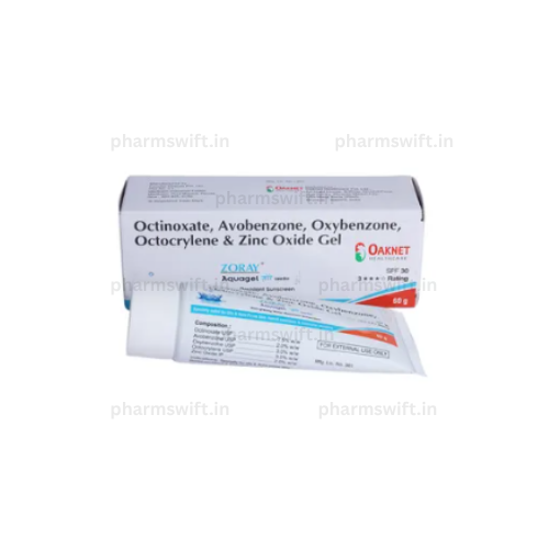 Zoray SPF 30 Aquagel is a lightweight, gel-based sunscreen offering broad-spectrum SPF 30 protection against UVA/UVB rays. Its non-oily and non-comedogenic texture is ideal for oily, acne-prone, or sensitive skin. The formula provides a matte finish, doesn’t clog pores, and offers water resistance, making it suitable for both indoor and outdoor use.