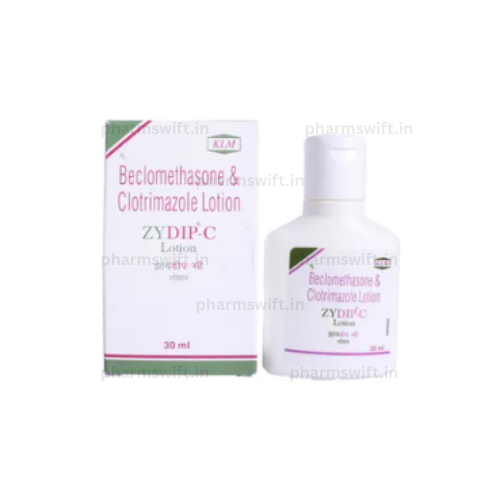 Zydip-C Lotion is a combination of clobetasol (a corticosteroid) and ofloxacin (an antibiotic), used to treat inflammatory and infected skin conditions like eczema, dermatitis, and bacterial infections. It offers dual benefits by reducing inflammation and fighting infection, helping restore skin health effectively.